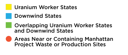 Adding downwind eligibility for all of Colorado, Idaho, Montana, New Mexico, Guam, Arizona, Nevada, and Utah, which were shown to have received high levels of fallout from nuclear testing (see map below);